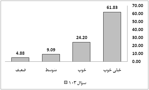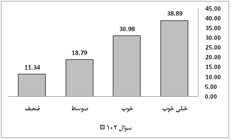102- در شهر شما کيفيت اطلاعرساني و تبليغات محيطي براي برگزاري آزمون چگونه بوده است؟
