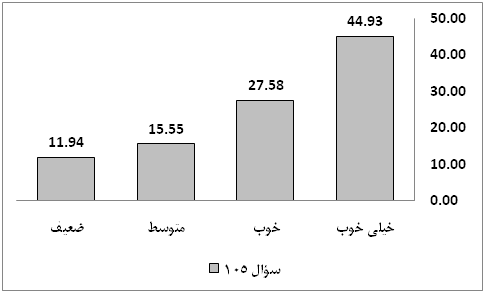 105- امکانات حوزه آزمون (وضعيت سالن، صندلي، سيستم گرمايش و روشنايي سکوت) از نظر شما چگونه است؟