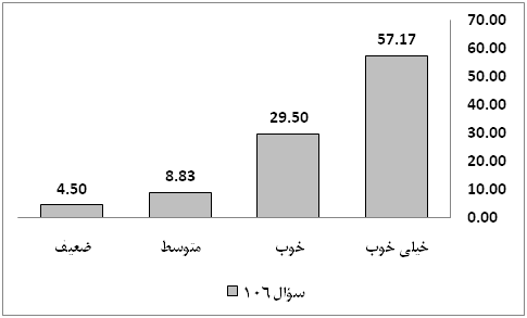 106- رضايت شما از کيفيت سؤالات طراحي شده و تناسب آن با محتواي منابع آموزشي معرفي شده به چه ميزان است؟