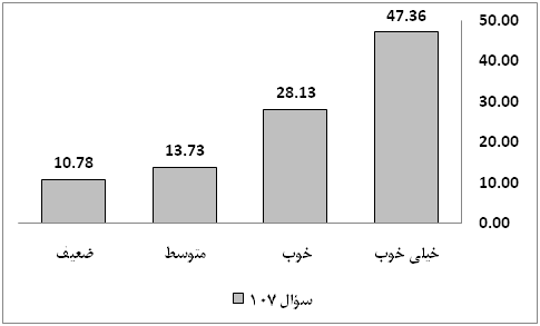 107- ميزان برقراري نظم جلسه (ساعت آغاز و اتمام آزمون، برخورد و پاسخگويي عوامل اجرايي و ... را چگونه ارزيابي مينماييد؟