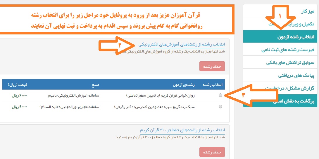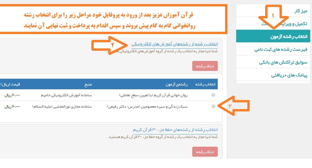 رشته های آموزش های الکترونیکی قرآنی آزمون آزمون امسال شامل دو رشته می باشند :